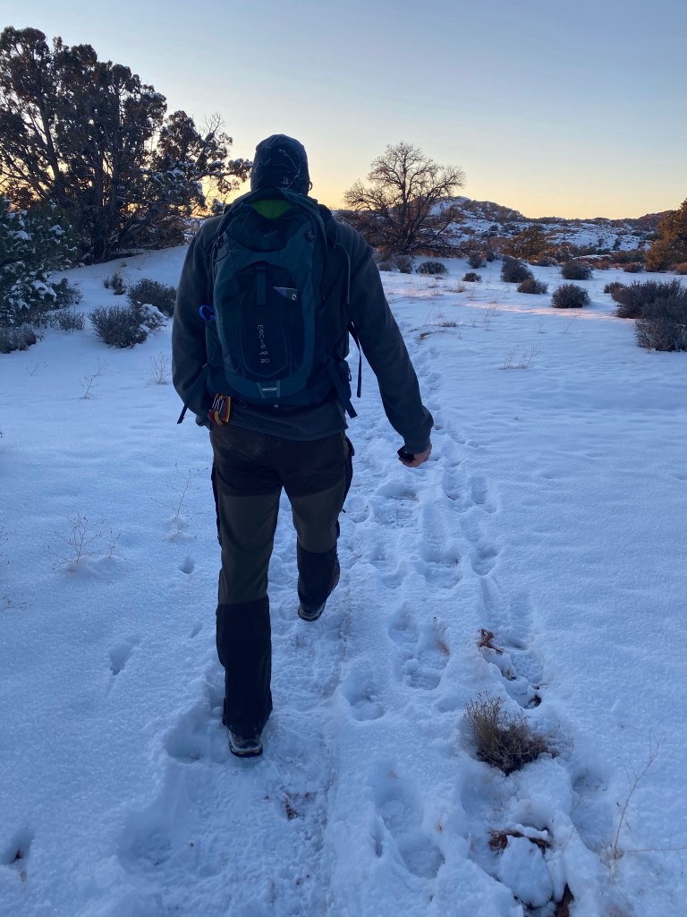Shannon leading the way to False Kiva in Canyonlands, Utah.