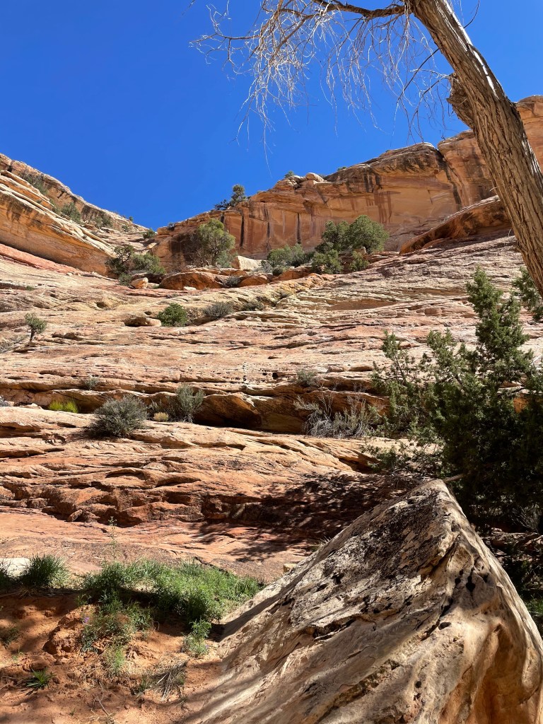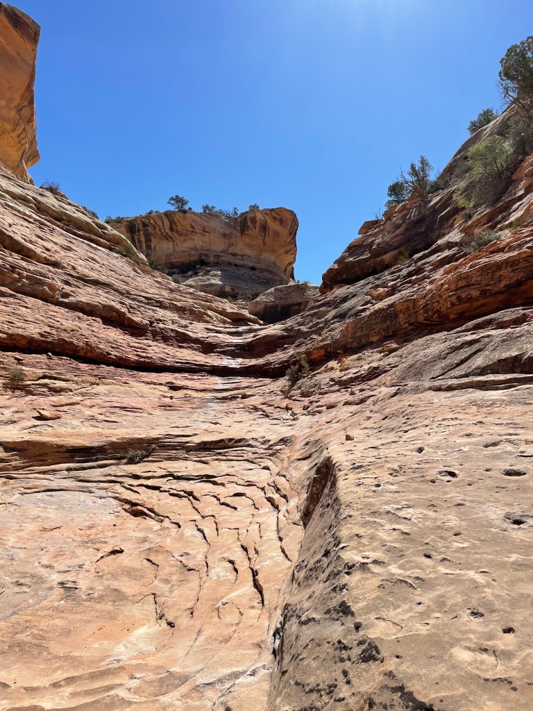 We had read about the hike, and watched a few you tube videos. It looked incredible! It was also listed as “ strenuous” . It’s hard to have any context for what that means when you’re reading it before you can get there and see for yourself. It was steep in places, and we did some rock climbing with packs on. There was a place to cross the top of a tall rock face with a strait drop, and some tricky footing. And it was hot. Sweltering hot, and very dry ( as you’d expect in the desert). It mentions in several places that it’s “not for beginners”