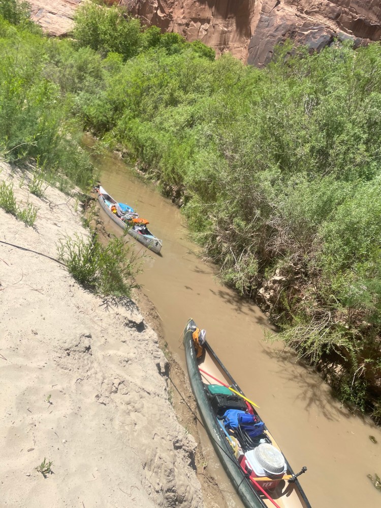 We thought about driving and taking our own canoes, but after talking through details, decided against it. We found Tex’s Riverways outfitters, and had a great experience with them! (Shout out to our front end shuttle driver, Colin). After our hike in Bullet Canyon, at the start of the trip, we drove up to Moab to load up on groceries for our 4 day, 3 night float trip. An overnight hotel stay, and we met the shuttle at Tex’s on Friday, May 7.