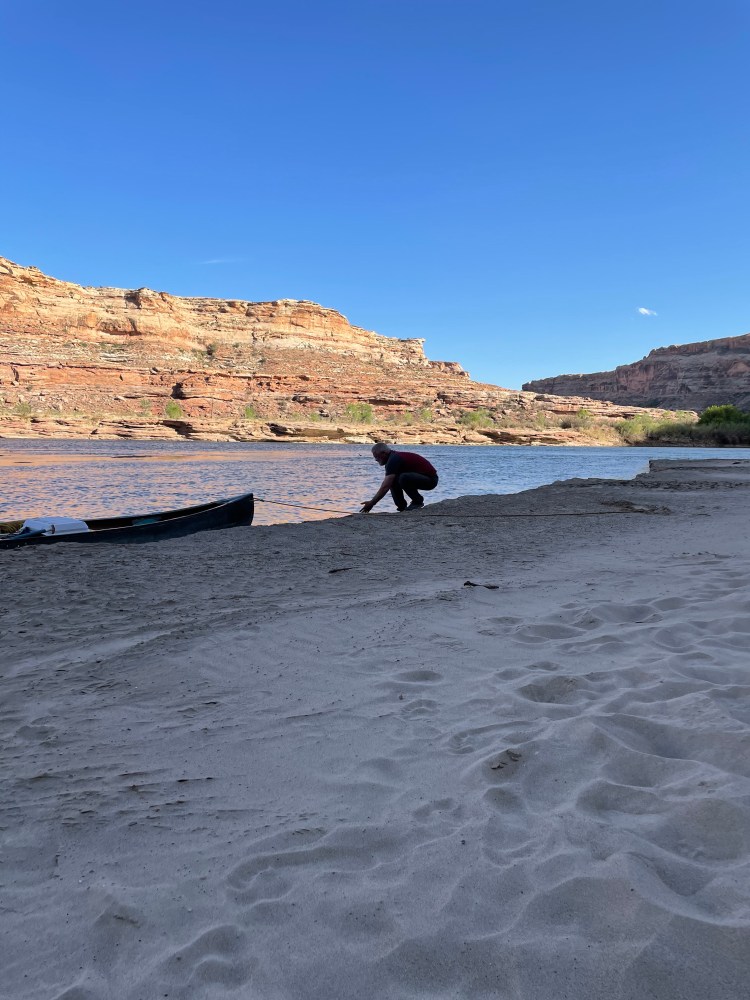 We’d read, and been told by Tex’s, that the winds can really pick up in the evening on the Green River at this time of year. There is a lot of information about the force of the wind and the difficulty of the paddle in those conditions. Sometime in the early evening on our first day, the winds came. The smooth, waveless level 1 river suddenly turned into a wild whitecap level III-IV experience. (that may be a slight exaggeration – but it was a rapid to be sure). Shannon was in the captain’s seat in the back, and worked hard to keep us steady and pointed in the right direction. After an hour or so of this, we decided to stop for the night.