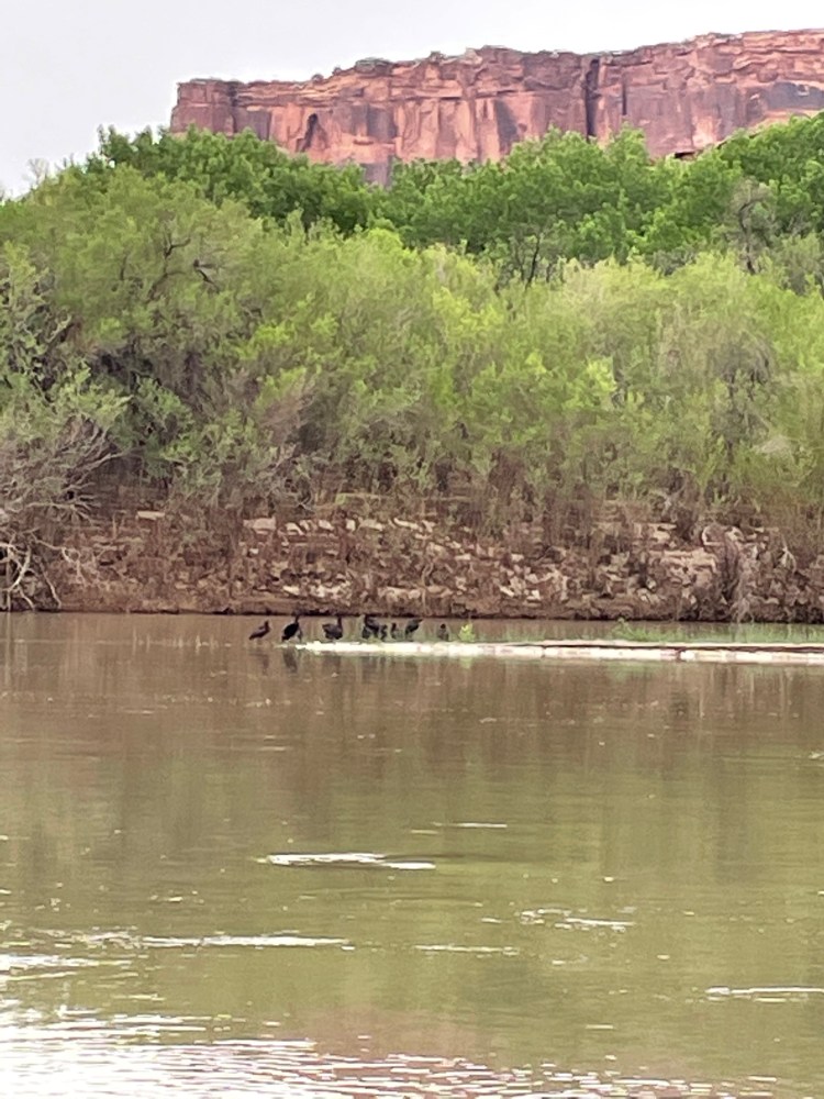 There were more Canadian geese on the Green River than I expected. I don’t know why it never occurred to me that they’d be here in droves. They could be heard every morning honking their greetings, and we saw them often along the banks. On the last morning float, however, we also saw some eared grebe’s diving underwater, and a flock of glossy ibis. This marked my first time ever to see the latter 2 in the wild, and it was very cool! If it hadn’t been for Shannon identifying them for me, I’d have had no idea what they were.