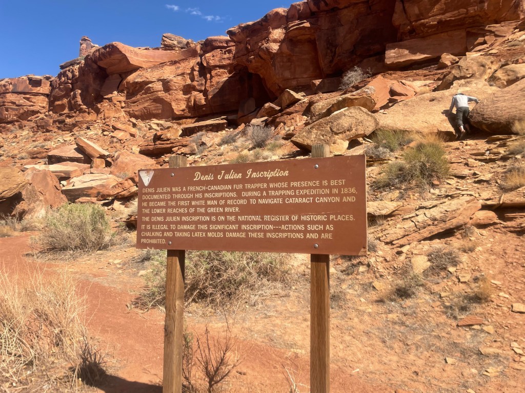 From bowknot bend, we planned to make a few more stops along the way. One of the things we were excited to see was the Denis Julien inscription. Denis was a fur trapper, and evidently he traveled this river in a wooden boat that is depicted beside his signature on one of the rocks he signed. His signature is in several places between bowknot bend and mineral bottom, and although we had it marked on a GPS tracker with info provided by previous people who’d come here, we were unable to find but one.
