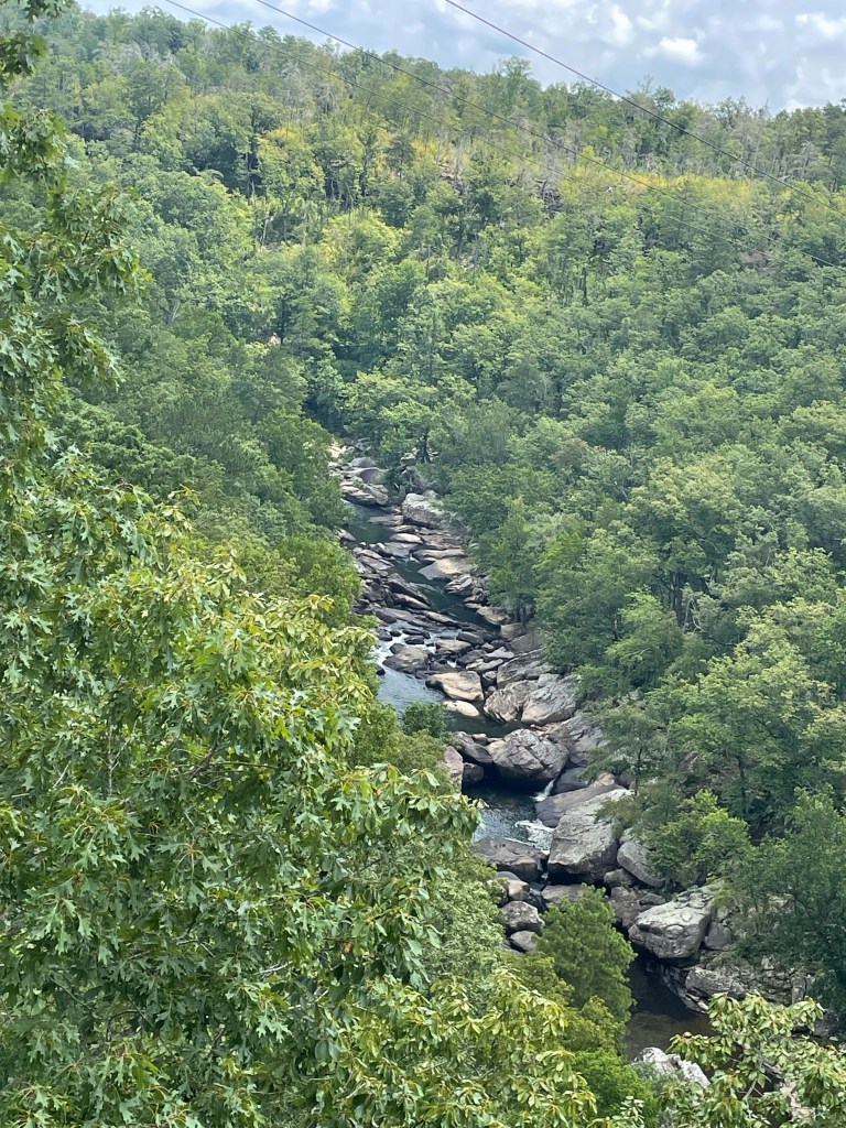 Little River flows along Lookout Mountain in Northeast Alabama. It is a beautiful place, with forested sandstone cliffs, waterfalls, and pools. There is a scenic drive along the canyon rim, with 8 overlooks with beautiful views. We had decided to drive along the 11 mile scenic drive first, before heading over to the Hippie Hole.