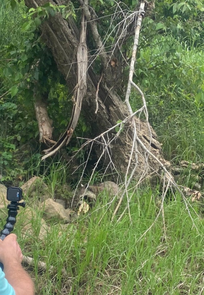 We brought steaks to cook over the campfire that night, and we’d picked up a watermelon at the grocery store. We’d hoped the watermelon would last for all 3 nights, however, we had some bandits after the sun went down. I heard them rustling near the tent, and when Shannon shone the flashlight, their thieving raccoon eyes glared back, undeterred. The next morning we found the hollowed out shell of the watermelon at the tree line. They didn’t waste a drop! Not a speck of fruit remained.