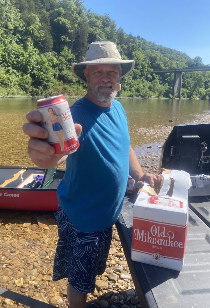 Side note – Shannon had been talking about wanting to find some Old Milwaukee for at least 6 months. His dad passed away several years ago, and Old Milwaukee brings fond memories of his dad and fishing. We’d looked around where we live in Alabama, and an earnest search showed that the closest place for us to find it was 7 hours away in Arkansas. We forgot about it. Fast forward to the day we got to Wild Bill’s and I spotted a case of Old Milwaukee in the fridge!! *cheers all around*