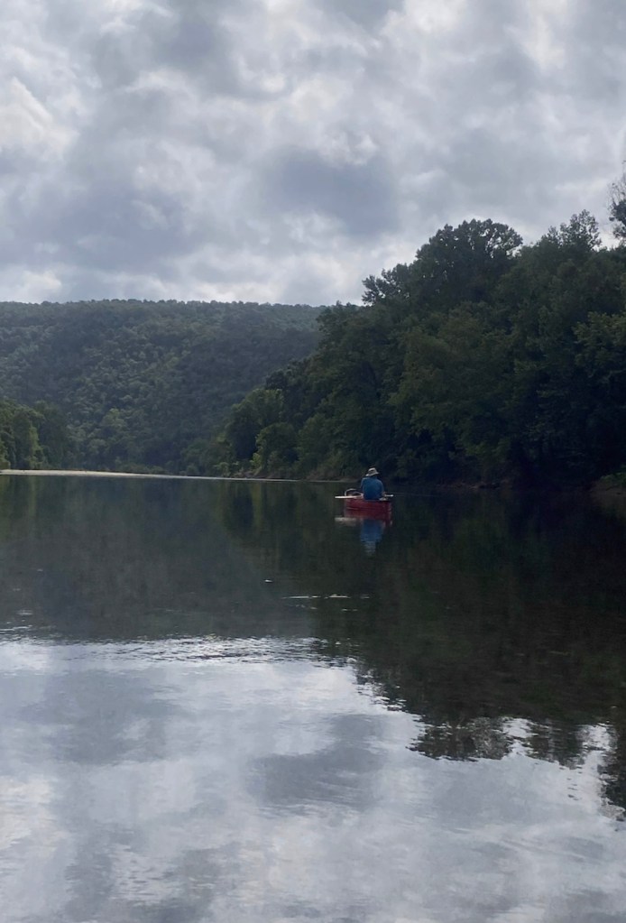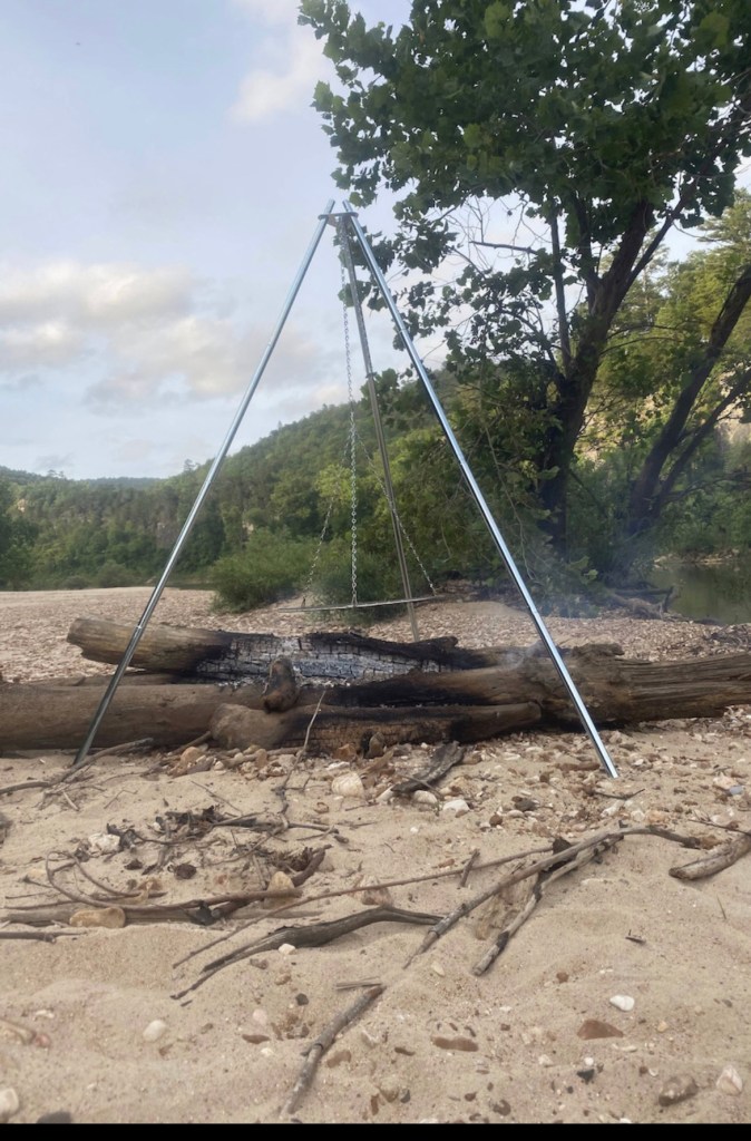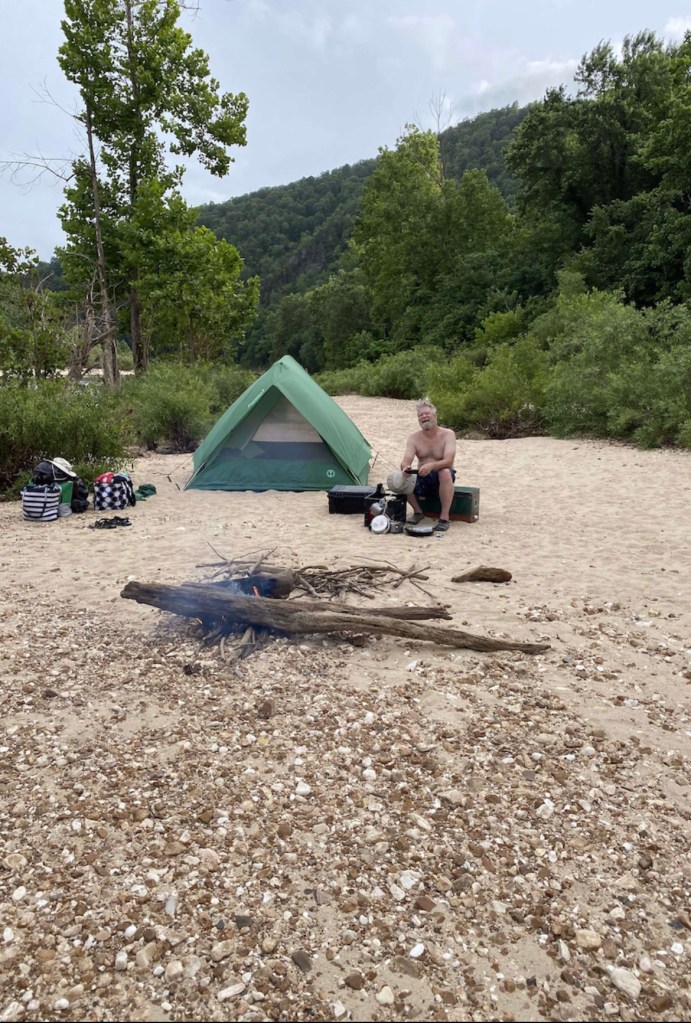 Once we’d finished dinner, and the sun started setting, we laid down on the sand again to wait for the stars and Starlink satellites to re-appear. Shannon, with his keen eye and knowledge of things that fly, pointed out that there were bats flying over our heads, one after the other. What was unusual, was the flight pattern, which seemed to be a strait line. Usually these insect bats fly in a twisty crazy pattern, as they hunt for mosquitoes and insects. What we realized as we started seeing hundreds of them come from the same direction, was that we were probably in front of a hidden cave or overhang. The bats were just waking up . Someone had punched the bat time lock to signal the workday had started! We watched them emerge from their bat lair for about 30 minutes to an hour, until full dark. It was one of the coolest things we’ve ever seen. Hundreds of them one after another. This, followed by a clear, star-covered, unforgettable night on the Buffalo River.