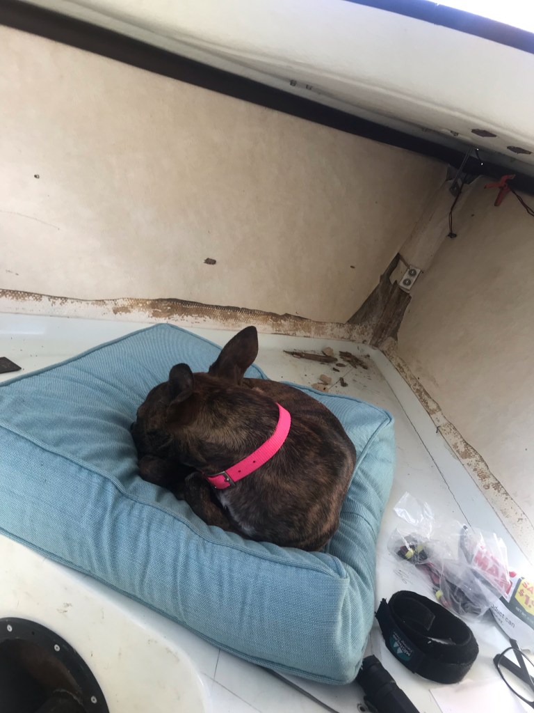 That weekend he sent me a text that said, ” mast light is up. Foresail is up. Mattress is laid out. Lights are disassembled and cleaned. Electrical panel is wired. Pins are replaced (they hold the rigging in place). Old toilet is out. Furler is installed.” I knew what most of that meant…..