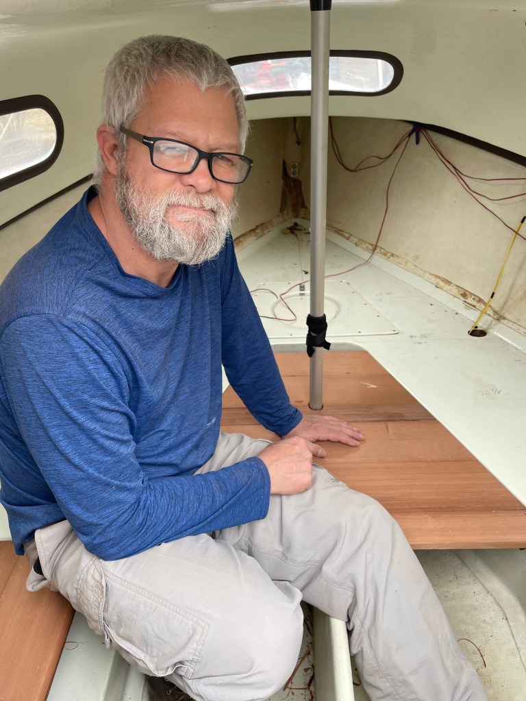 We wanted to be able to sleep inside the small cabin. Shannon found a YouTube video of owners of a boat just like this one, who have themselves outfitted pretty perfectly. They’ve obviously spent a lot of time and effort ( much longer than 3 weeks) getting the interior just like they want it. I’ll share it here so you can get an idea of what we’re after if you’re interested: