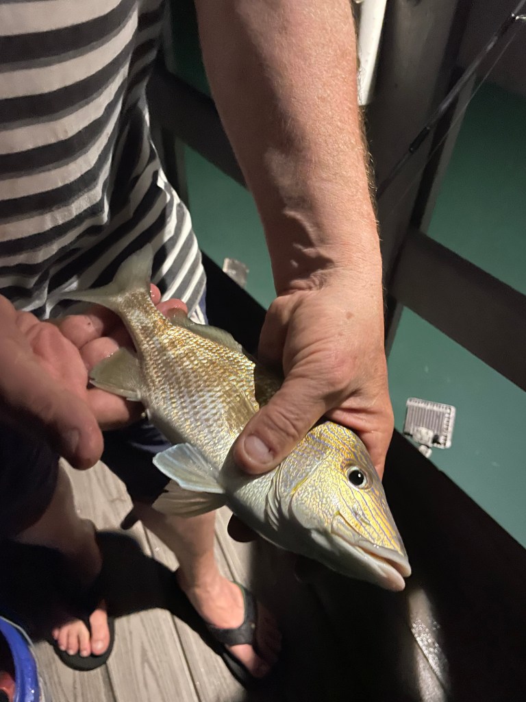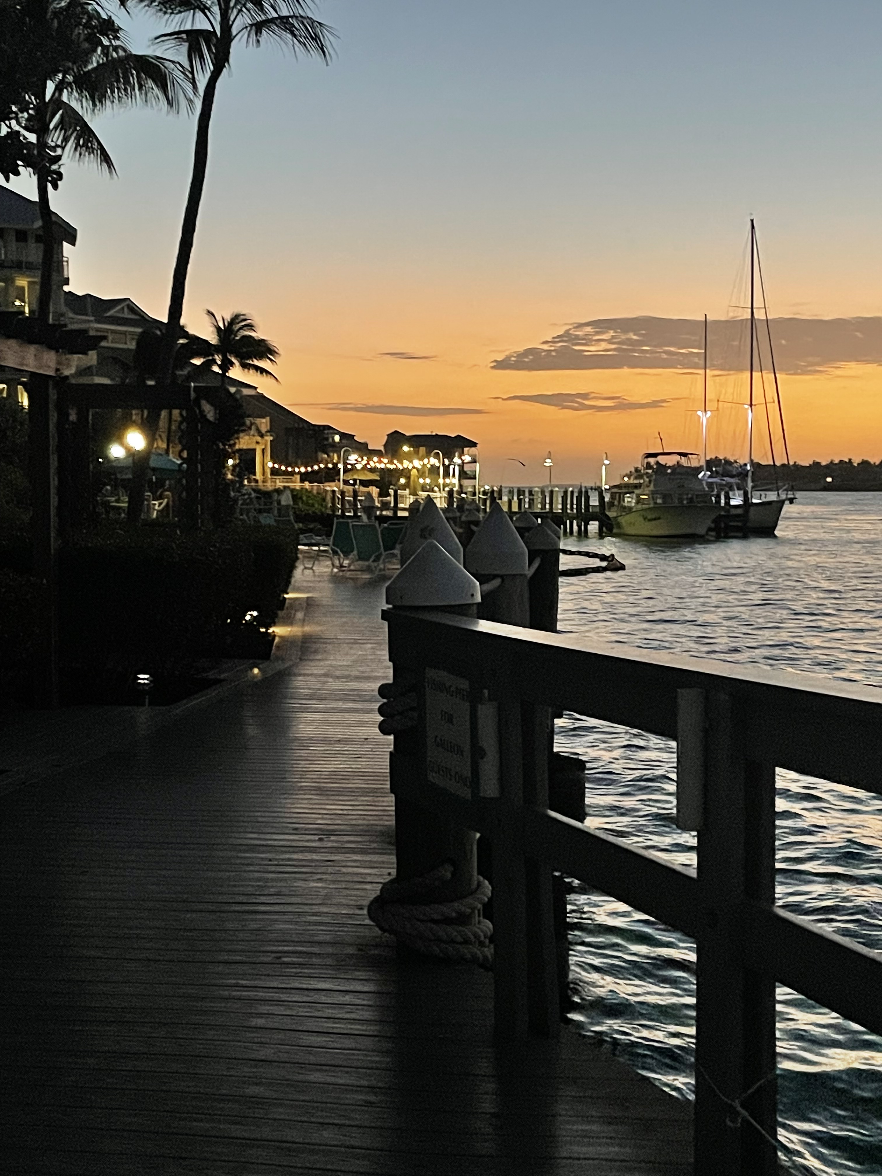 After our 8 mile trek through town, we stopped at Two Friends Patio for late lunch and live music. Both were outstanding! We wanted to get back to do a little fishing off the pier at the Galleon Marina, so we headed back. We took our time, and got to enjoy a beautiful sunset on the water