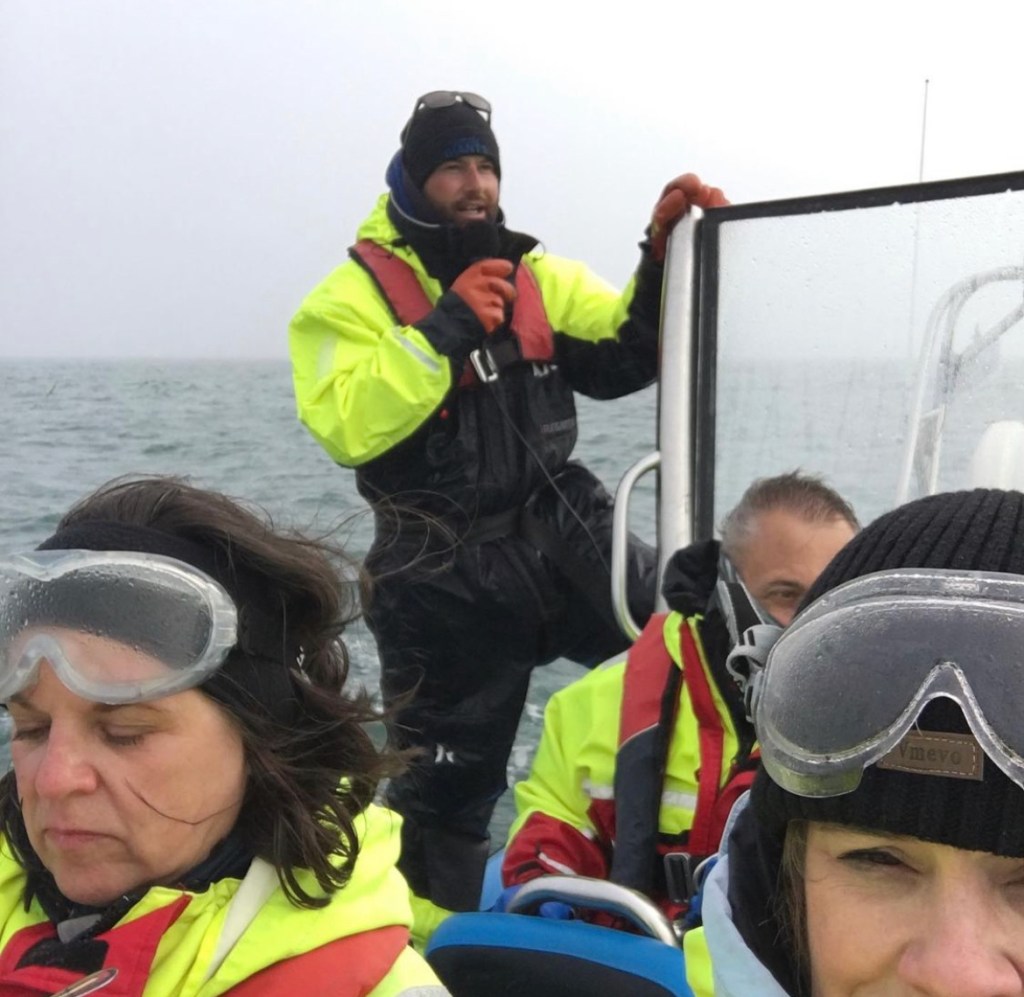 This was now our only opportunity to go and watch the whales before we had to carry on with our route, and the weather was looking dicey. We got a call that our boat was cancelled for that day, and they put us on a later charter. But when we got to Husavik, they told us it wasn’t looking good and would likely be cancelled as well. The charter we’d booked was on a wooden Schooner, and the conditions were not favorable at all for this type of vessel. So we decided to go and grab lunch and decide what to do. As we were eating, we looked out the window and noticed that there was one company with some inflatable boats that looked to still be going out. It was the Gentle Giants company, and somehow we were able to jump in and get the last 2 seats for the last tour of the day. Which also happened to be about 4 hours later than we’d planned to leave Husavik. We didn’t want to miss this.