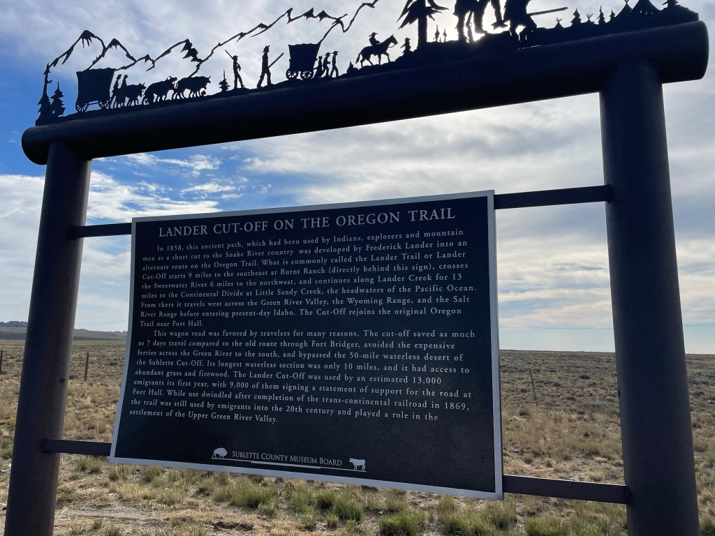 For those who watched the “Yellowstone “TV show, and then “1883″, the prequel to the Yellowstone story, the Oregon Trail was recently brought to mind. Watching the fictional depiction on screen inspired many conversations between us about what it was like. All the better timing for us to come upon one of the markers for the Oregon Trail. There’s nothing quite like coming to a place seemingly in the middle of nowhere, where pioneers journeyed in covered wagons 150 years ago. It was entirely amazing to be able to see the actual wagon tracks that remain today.
