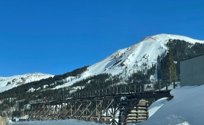 We set out from Blanding, and made a quick gasoline stop and scenic drive through Durango, Colorado (about 125 miles/2 hours on 2 lane roads). I’m sorry to say that I have no photos of Durango. The drive from Durango to Silverton, is about 48 miles, and takes about an hour.