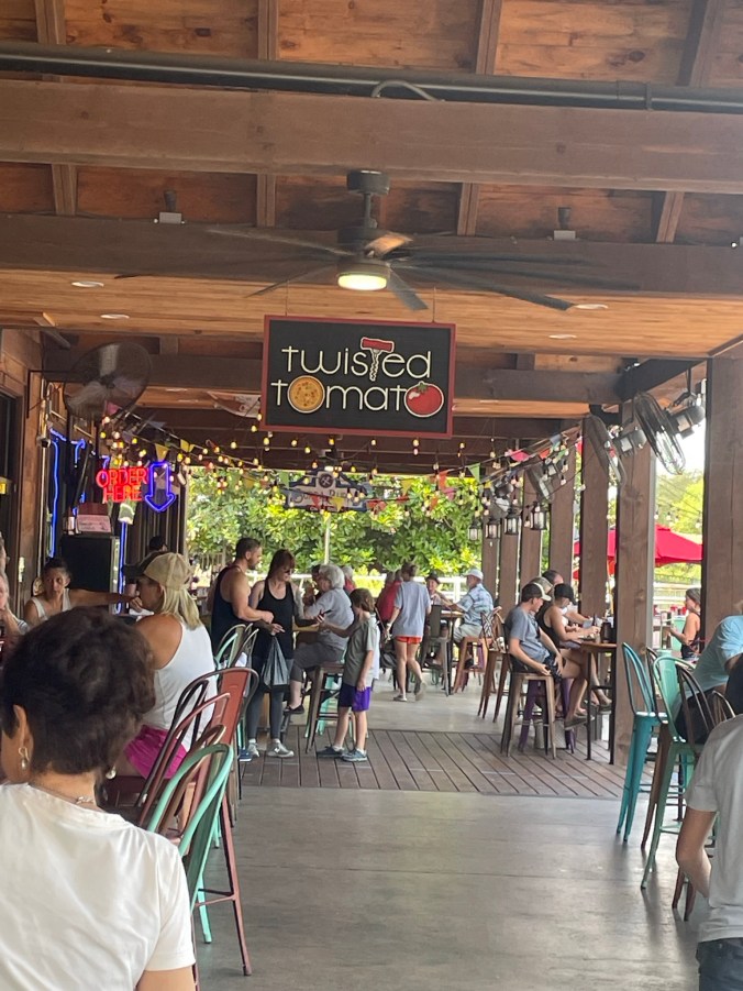 The Twisted Tomato sits in an area called the Riverwalk City Block (linked) in the twin towns that occupy the state line between McCaysville, Georgia and Copperhill, Tennessee. Here you can eat and shop with river views at places like Happy Bear Ice Cream and Treats, and Burra Burra on the River. One street over, on the main street through town, there are a couple of Mexican restaurants, and a few that serve burgers and wings.