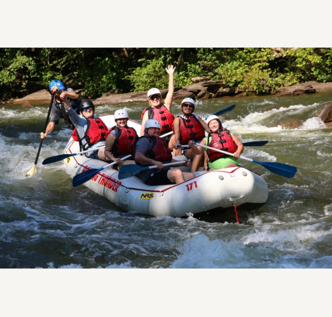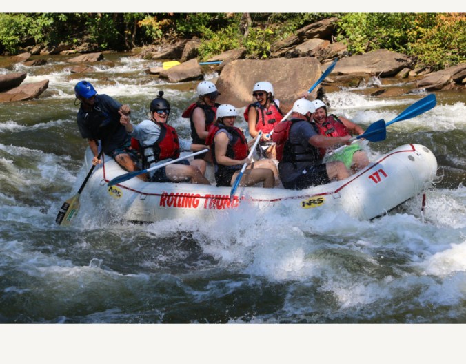- Side note – there is a photographer for the Rolling Thunder River company, and the other rafting companies that come through here, in the same spot. The guides know very well where it is, and are sure to let you know where it is and where to look at the camera. There’s a split second to wave before hitting a big rapid . Once you finish up your rafting trip and get back to the outfitter, the photos are visible on computer screens labeled by guide name. It’s a lot of fun to get back and check out your photos – the wilder the better! If you decide to purchase yours, you do it right on the spot and they email the entire file of about 15-20 photos strait to you – and you can add as many emails to receive the file as you want. Totally worth it !