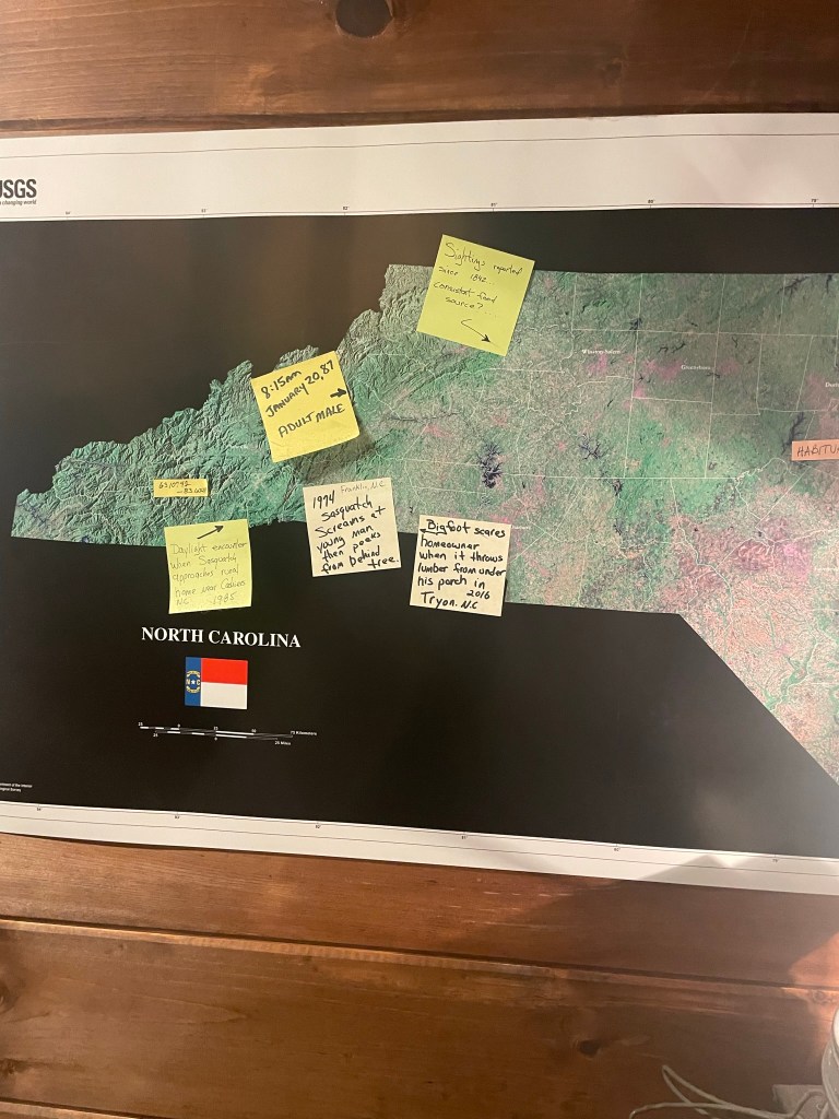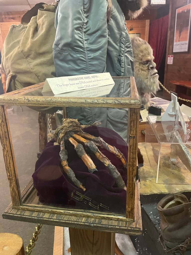 For a whopping $8 you can spend as much or as little time as you like walking through all of the exhibits. There are maps with pushpins and post it notes showing where and when people claim to have seen or experienced Bigfoot. There are recordings of explorers telling stories of their encounters that you can listen to with headphones, and there’s also a documentary that plays in a small theater room.