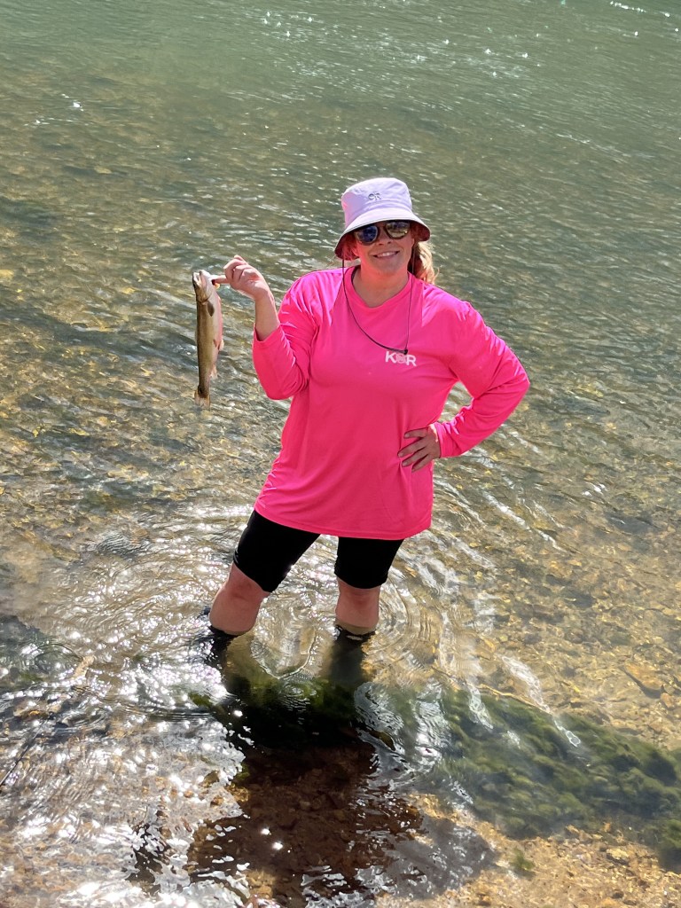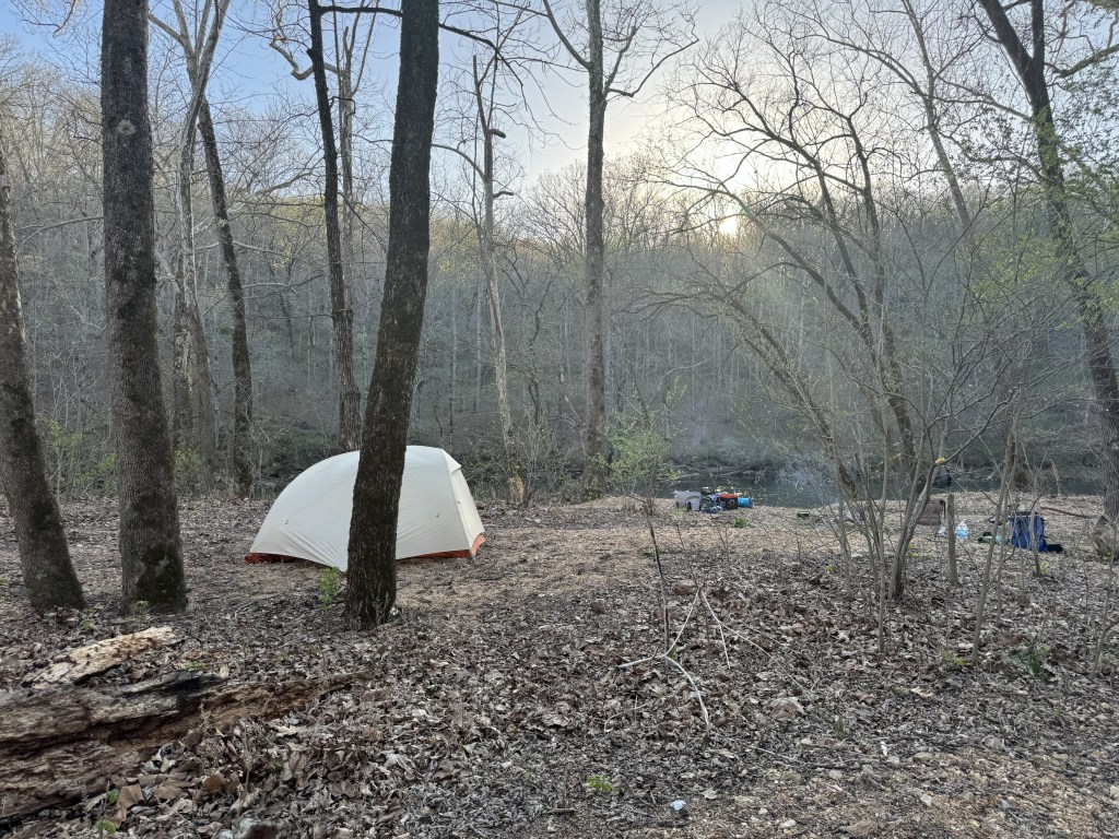 We floated a few more hours, and decided to set up camp in the early afternoon so we could enjoy some trout fishing, and some hammock naps. We stopped about .55 miles before Whitten, which was around mile 27. I started trout fishing while Shannon set up camp and was thrilled to catch a good one. Shannon caught another one later and we enjoyed some excellent fresh trout over the camp fire with dinner: