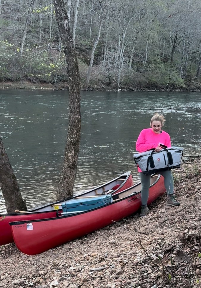 There’s a nice fire ring and a flat meadow which would be perfect for camping, but we were not nearly ready to stop yet for the night. As we were finishing up lunch, 3 USFS Rangers pulled up in a flat bottom boat with a motor. As we watched them approach, of course we wondered if we were in trouble. After they greeted us, they all 3 got out of the boat and headed strait up to the cave. They were gone again before we were! As it was Eclipse 2024 weekend, surely they expected lots of suspicious activity. After lunch, we packed up and were on our way again.