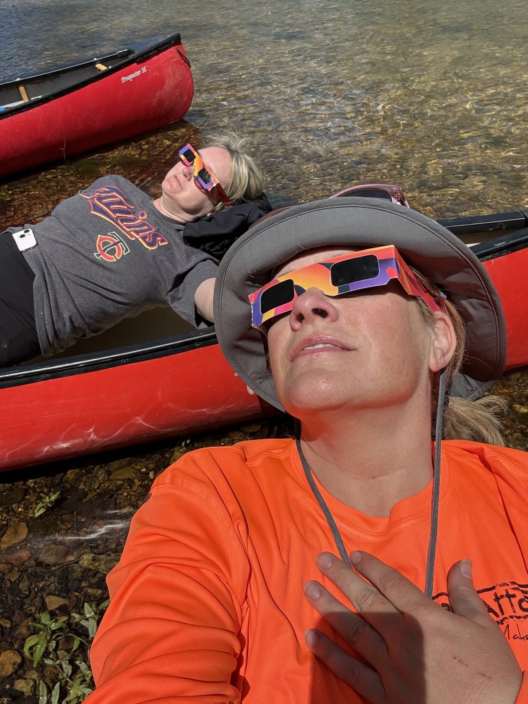 We could hear people ahead of and behind us on the river whooping and cheering when it was happening. While we didn’t want to exactly be shoulder to shoulder with a field-full of watchers, it was fun and brought a sense of camaraderie to hear everyone cheering and playing songs like “total eclipse of the heart” on theme.