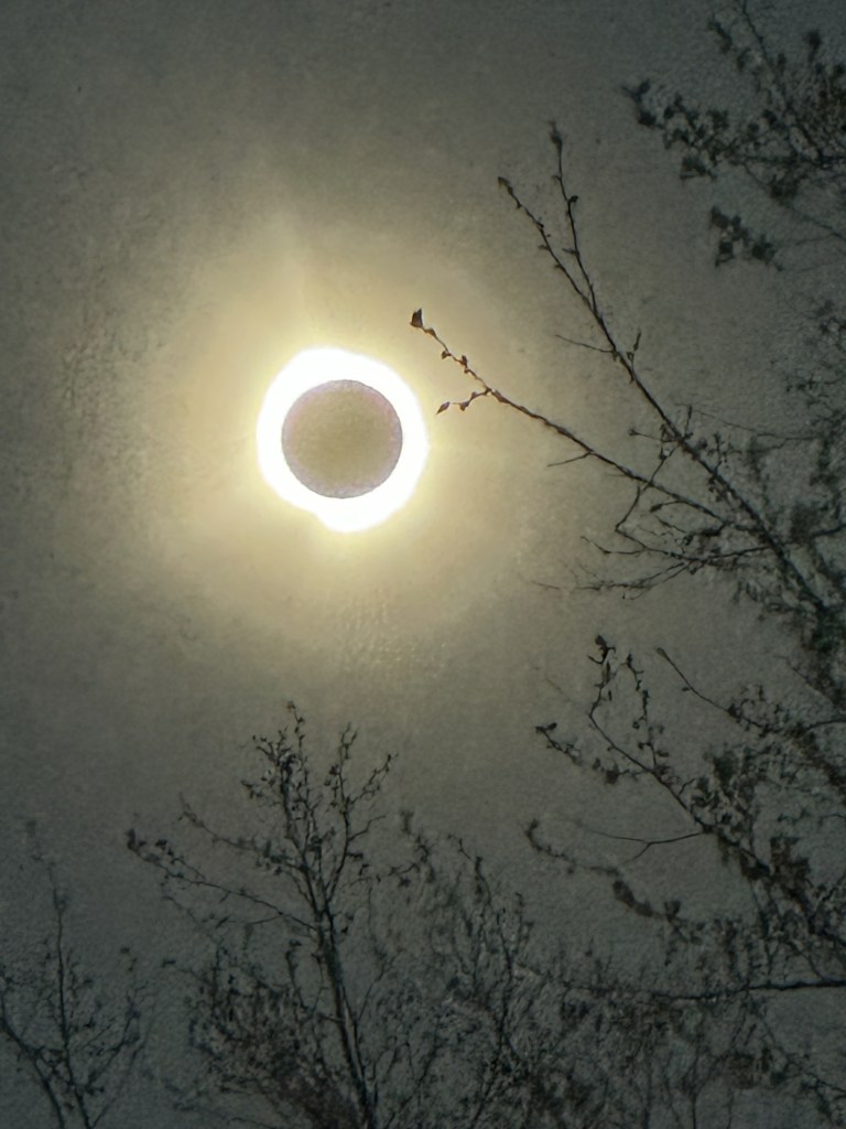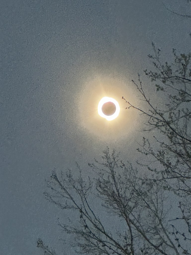 Without a previous reference point for a total eclipse, although excited to see it, I wasn’t prepared for how incredible it would be! It was truly amazing. We had around 4 minutes of total eclipse and it was extraordinary. We were interested and excited to hear the owls start to hoot, and Shannon said he could hear the wood ducks “going to roost” by a certain noise they made. There was a slight sunrise to the east and sunset to the west and I tried to capture it in a video.