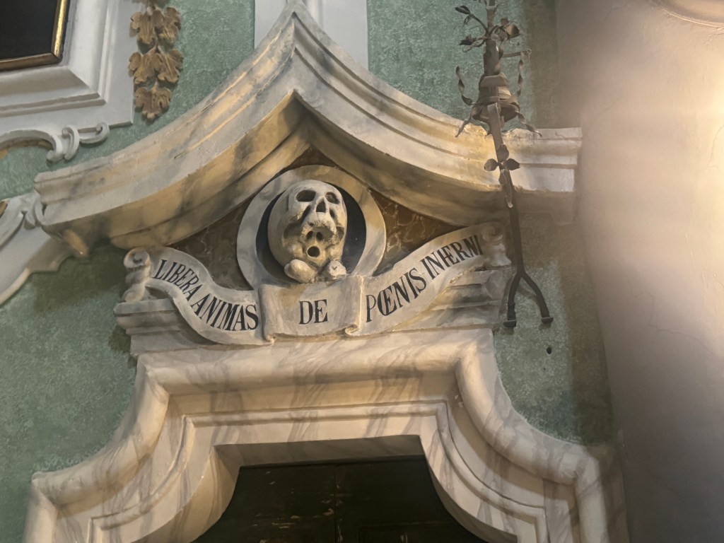 Chiesa del pergatorio – From the website below “ Skulls and skeletons are omnipresent in this church dedicated to souls trapped in purgatory. This church is located just outside of the Sassi di Matera. It is an 18th century baroque church, adorned with skulls and skeletons and other death-related decor.” Here’s more if you’re interested :https://www.atlasobscura.com/places/chiesa-del-purgatorio