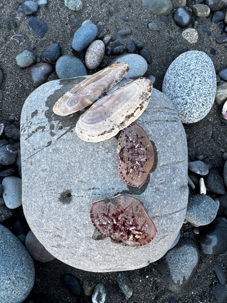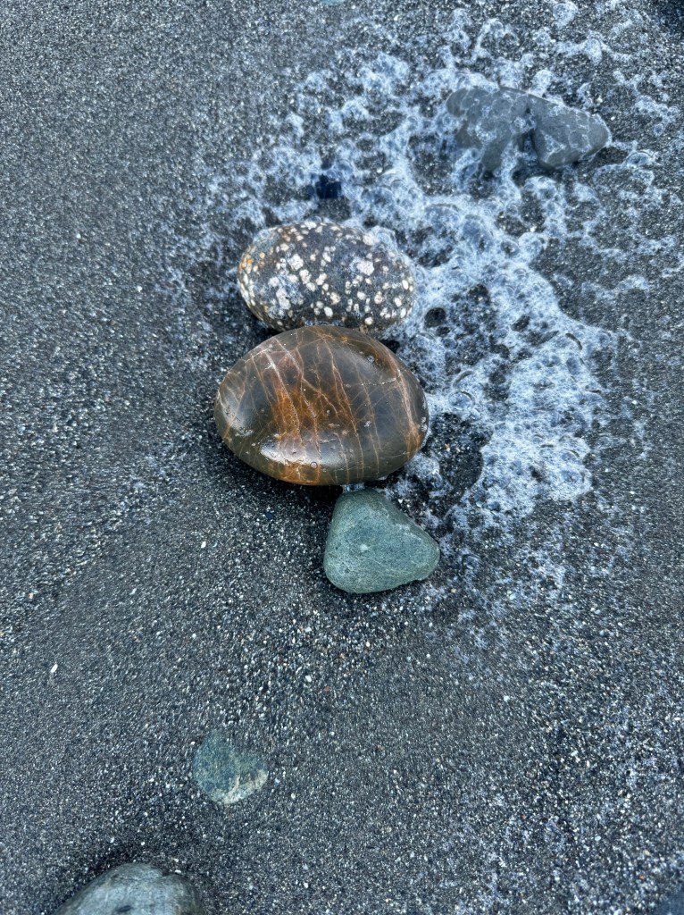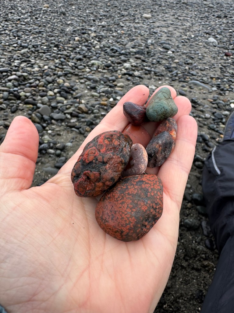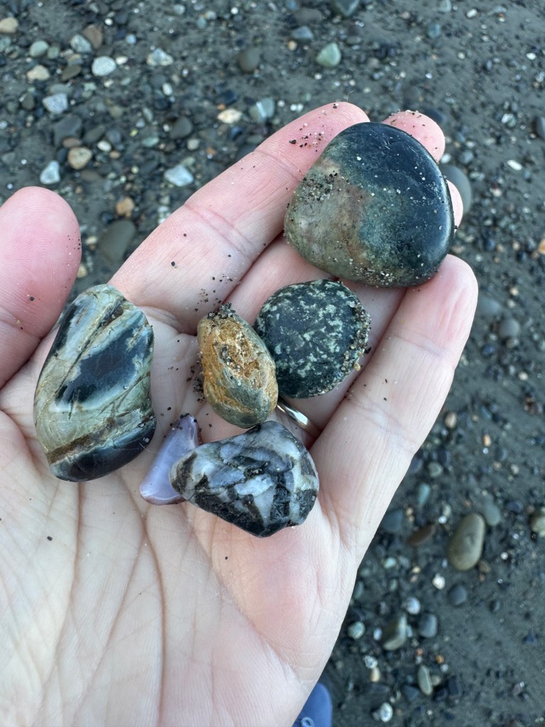 Besides sunsets, we hoped to see wildlife, (particularly whales, sea lions, and starfish), and we hoped to find beautiful rocks. One thing Shannon and I learned early on that we have in common, is that we love to collect rocks and other things on the shoreline like shells and sea glass. We have enough items collected at home to open a small museum, and are actively considering ways to keep and display all that we have. Still, rockhounding was a very big draw. We were hoping to find agates, sea glass, jasper, and lots of awesome surprises – and we most certainly did. Here’s a gallery of highlights of our finds that we loved: