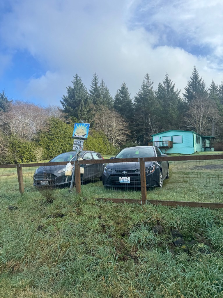 The Shi Shi Beach trailhead is a 15/20 minute drive from the tiny town of Neah Bay. There is no overnight parking at the trailhead however there is a man who lives 0.5miles away who will let you park in his front yard for $10 a day. So that’s what we did.
