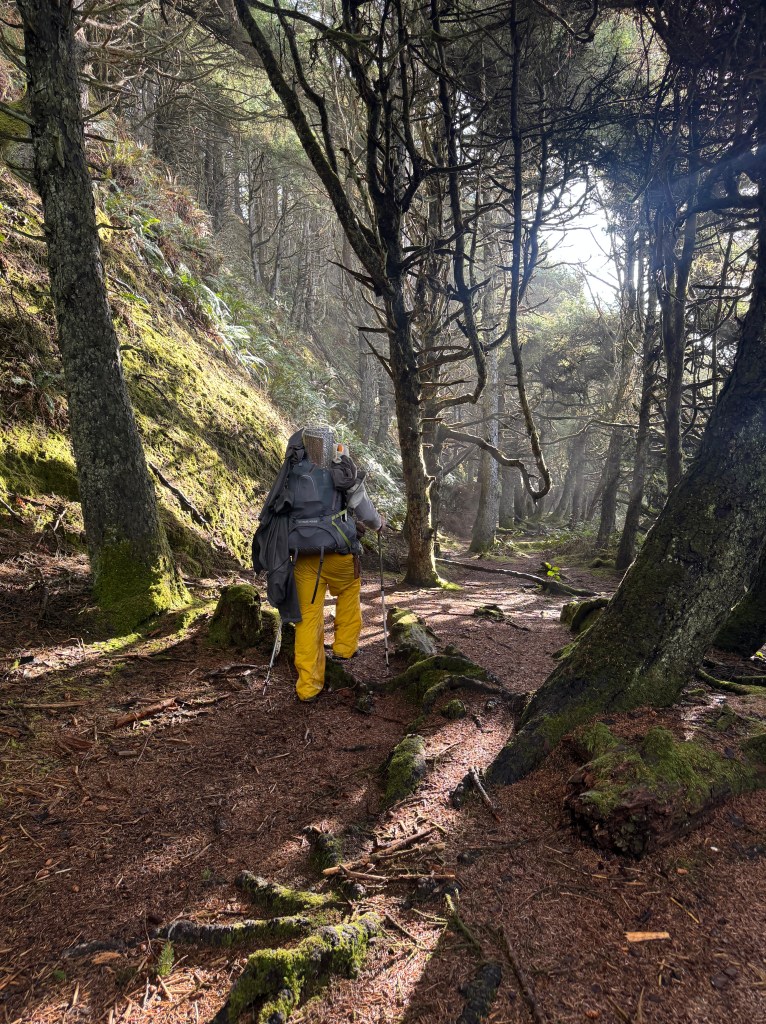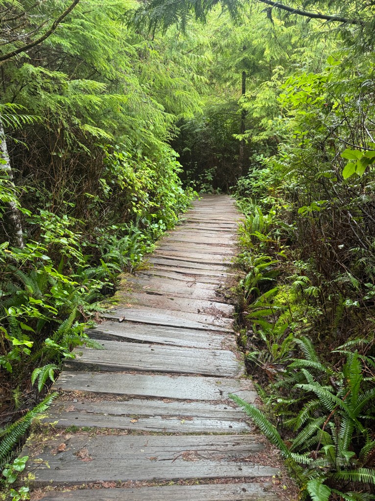 As we’d driven a couple of hours and made a few stops, it was about 1pm before we dropped off the car, and another half hour before we got started on the trail. Thankfully, the hike from the trailhead through the rainforest to the beach is only about 2.5 miles. This first part of the hike happens on Makah Reservation land (read more about the Makah tribe there) and you must secure a recreation permit from them in Neah Bay. There’s a sign where the trail drops down onto the beach that marks where leaving Makah lands and entering Olympic National Park