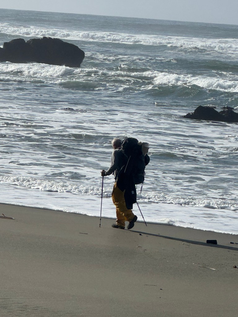 Once we hit the beach, it was just over a mile to a creek called Petroleum creek, beyond which is where we found our campsite. Shannon set out to find us the right one while I “iced” the ankle.