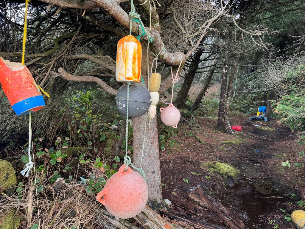 The campsites on Shi Shi Beach are marked by bouys. Shannon checked out 4-5 sites along the way that he declared were too muddy for us before settling on the right one. I’m always thankful for his careful assessments of things like this once I’m over having to keep walking when I’m ready to relax. 100% of the time he considers all potential problems, and is right to do so. As usual, our campsite was fantastic!