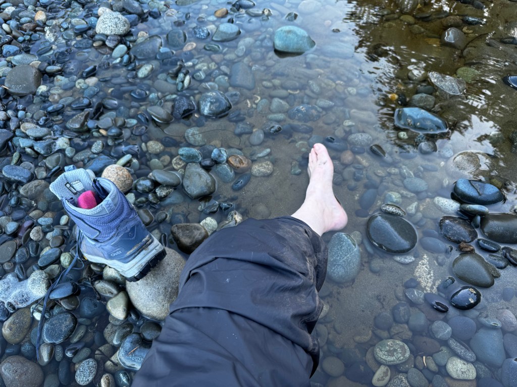 - Side note – I hurt my ankle about a year ago. Peroneal Tendonitis. It’s the type of injury that isn’t very serious at first, and feels better for a while after a few weeks of the RICE method (rest, ice, compression, elevation). In my case, it never fully healed. At the same time, I am walking a LOT more at work in the past 6 months and that has really irritated it and I could tell it had flared up again. So 4 days before we left, I decided to go back to the Dr about it to get some guidance about best way to employ it on a tricky hike. After getting a steroid shot in the tendon, oral steroids, and instructions to stay off of it for “3 days until you leave” I explained that I still had to work, and therefore, walk a lot. Dr said “fine, but I want you in a boot’”. One of those big giant clunky boots with Velcro straps. Dr said I could leave the boot at home on our trip as long as I was “careful” and still iced it 3-4 times per day. After I explained that I wouldn’t have access to ice on our camping trip, we agreed that I could put it in the freezing cold Pacific Ocean instead. The photo below is proof that I did that a few times. Still, there was enough of “not resting it” for the week we were there that I’m back in the boot. “Until it heals. “ #worthit